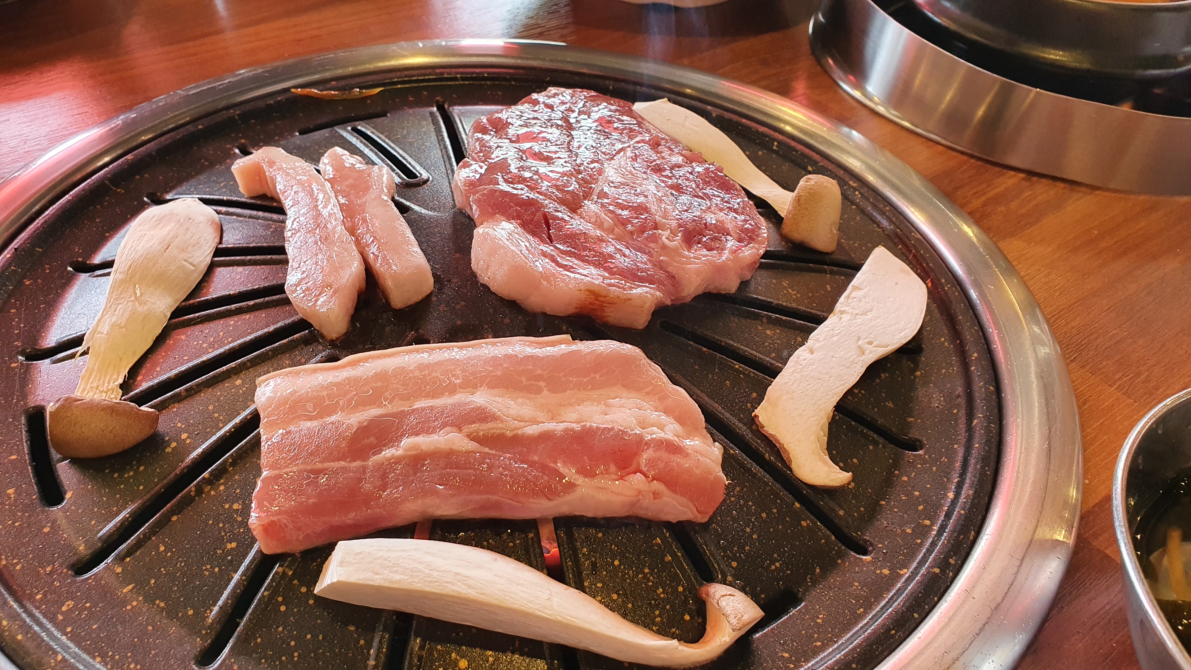 고기를 주문하면 생고기를 주시는데 고기가 여러부위가 조금씩 나와요 ㅎ 고기가 신선해보이기 여러부위 먹을 수 있어서 좋더라구요 ㅎ 저는 고기 많이 먹는 편은 아니지만 두명이서 돼지 반마리 먹고 냉면먹으면 딱 맞을 것 같은데 저희는 더 먹었다는 ㅎ