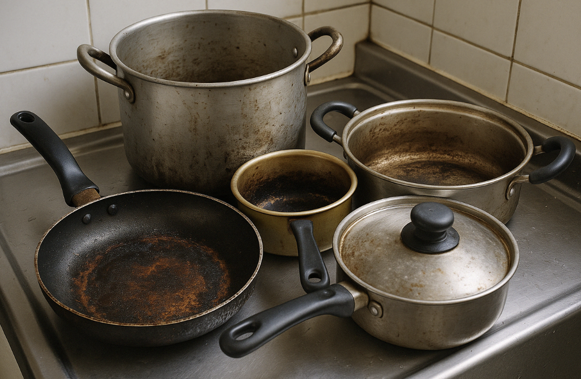 - 탄 냄비, 벗겨진 프라이팬 → 종량제 봉투에 일반쓰레기로