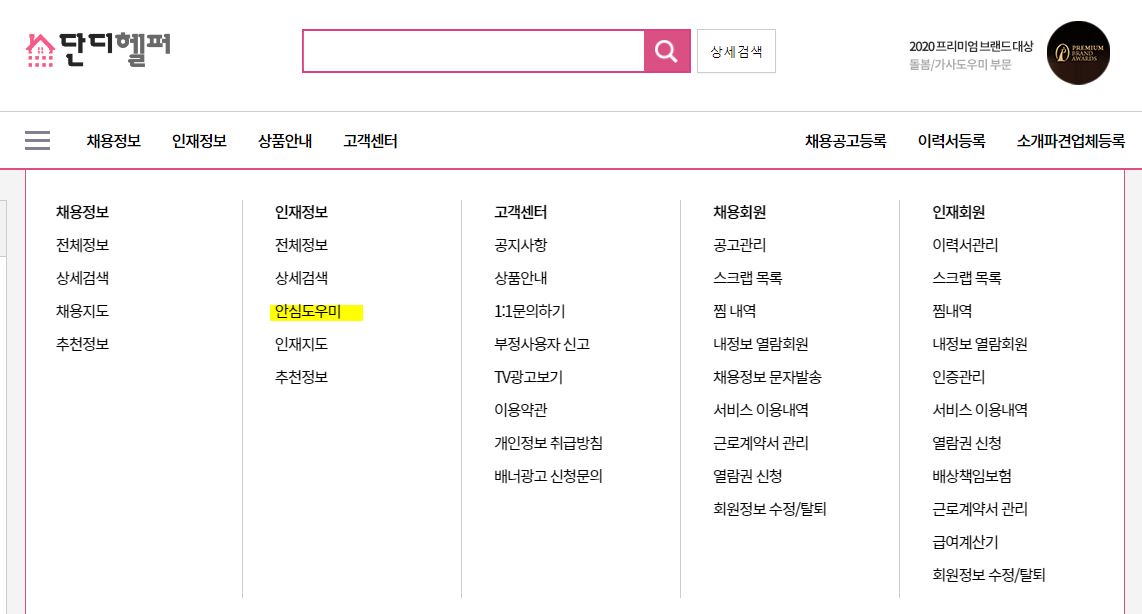 1. 가입을 다 마치셨으면 상단의 메뉴에 인재정보에서 안심 도우미를 들어가시면 인증되신 분들의 목록을 볼 수가 있어요. 본인인증을 마치신 분들이기 때문에 조금 더 안심하고 채용을 고려할 수 있을 것 같아요. 인증이 되어 있는 분인지 한 번 더 확인하세요!