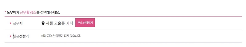 살고 있는 지역을 선택해 주시면 되는데요, 구체적으로 입력하는 것은 아니니 채용된 다음에 알려주시면 됩니다.