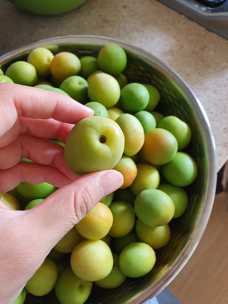 6월이 되니 마트에 매실이 많이 나왔어요. 청매실은 일 년 중에도 잠깐 나오는 것이기 때문에 시기가 지나면 구하기 힘들어요. 저는 6월 말에 샀어서 완전히 파릇한 청매실을 사진 못했지만 약간 익은 매실을 살 수 있었어요. 구입처에서는 황매실이 매실청을 만들었을 때 더 맛있다고 하네요. 일단 나중에 먹어보면 알 수 있을 것 같아요.