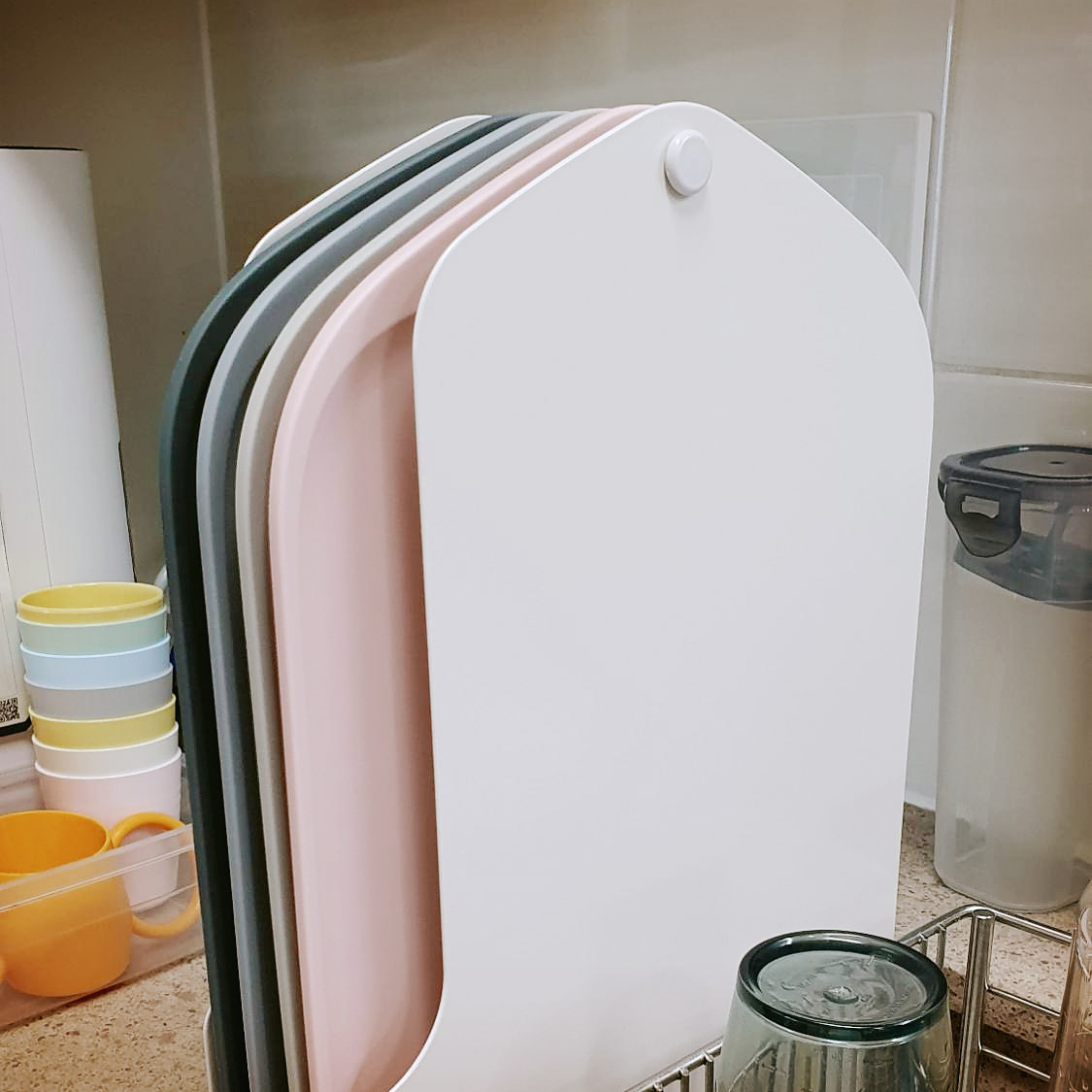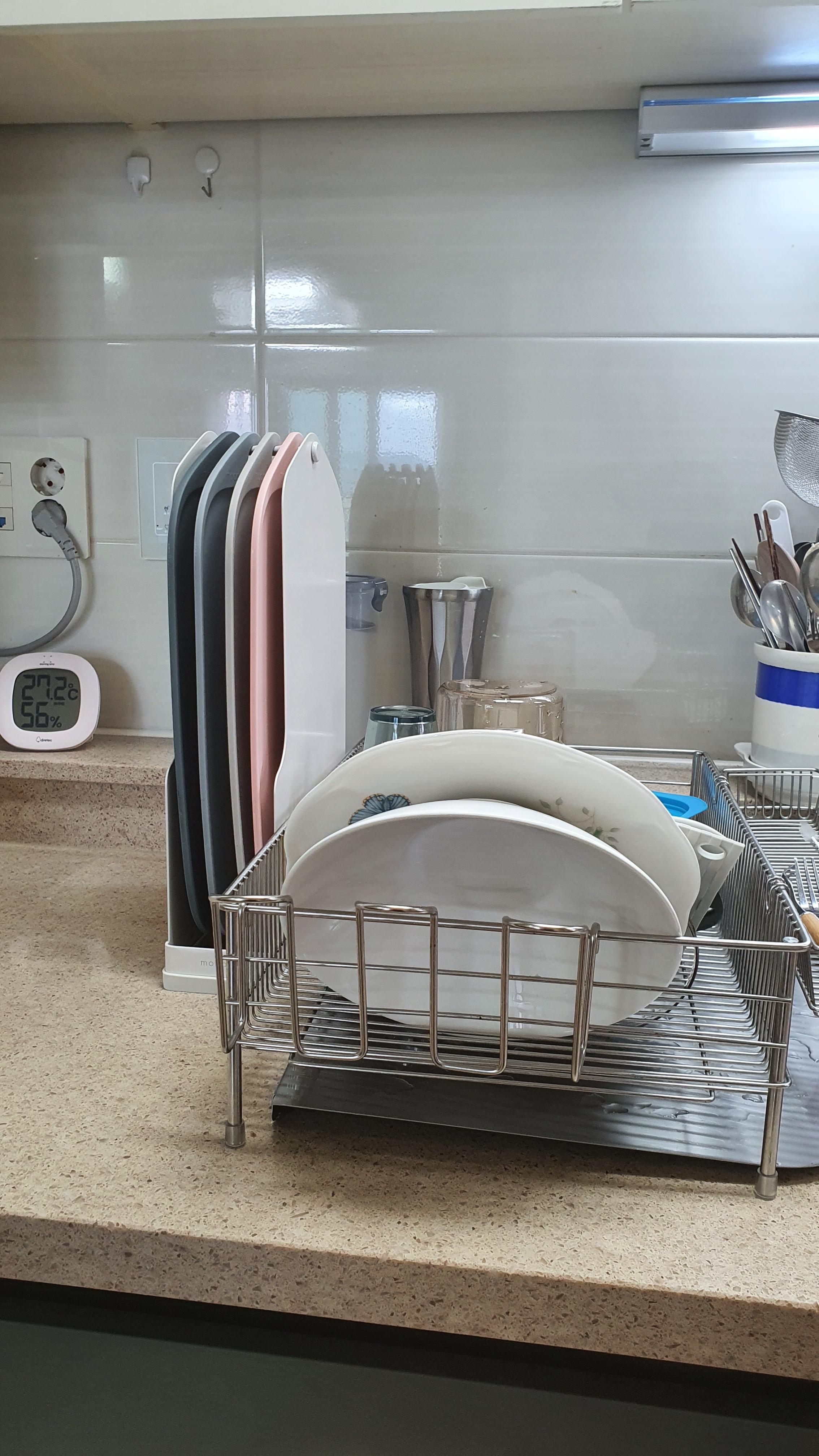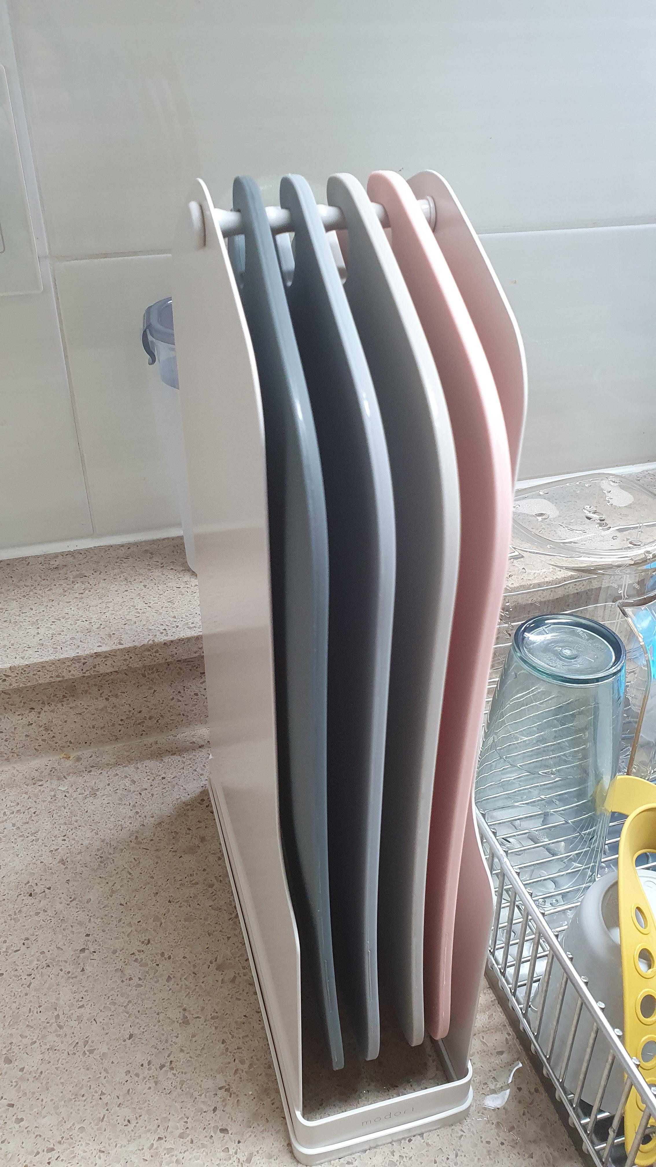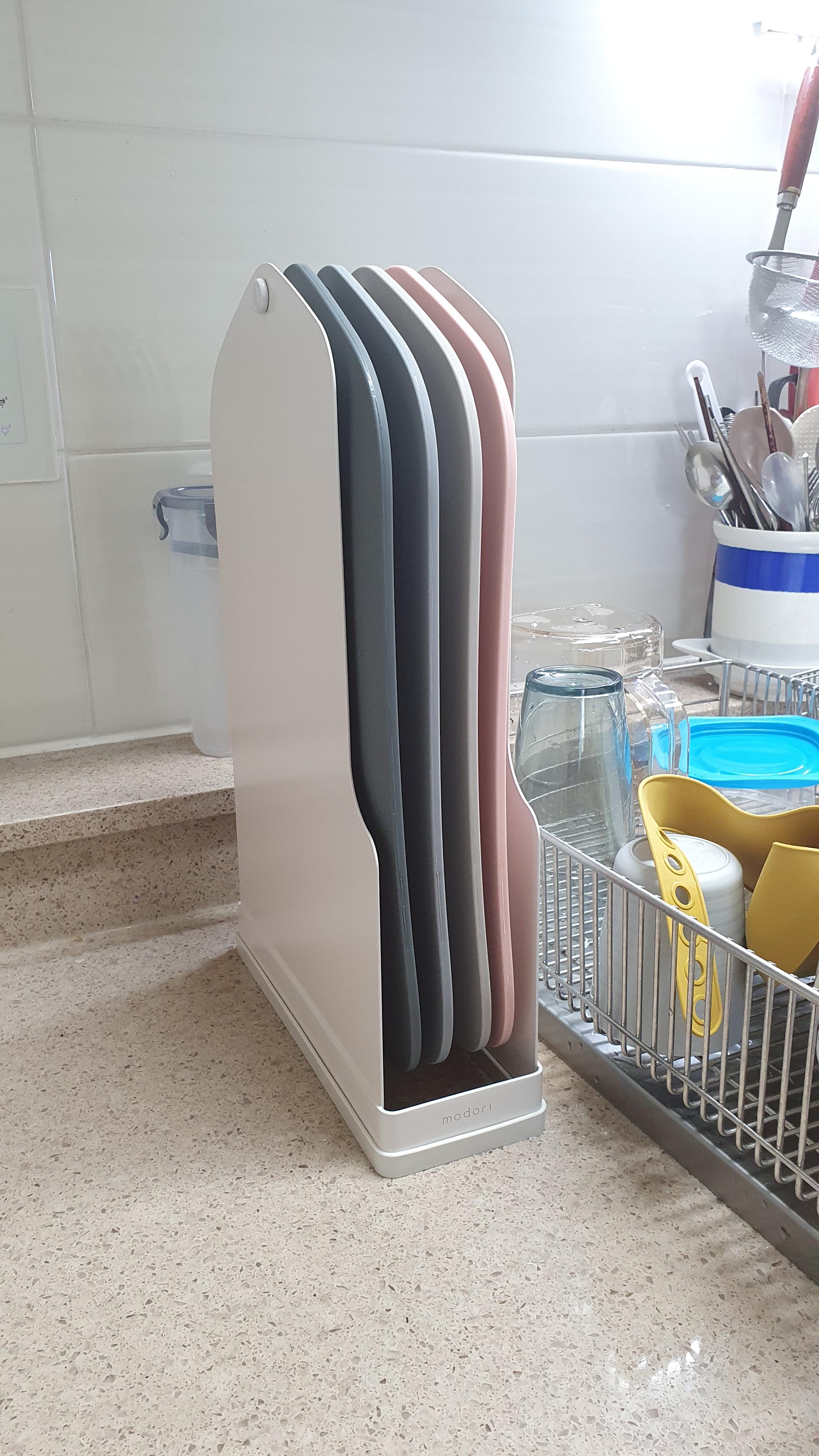 세트를 사면 이렇게 도마를 걸어둘 수 있는 걸이도 같이 오니까 물기가 있어도 이렇게 걸어놓으면 금방 말라서 위생에도 좋더라구요 ㅎ 원래 쓰던 도마는 설거지 하고 옆에 기대놓기도 하고 다른거랑 겹쳐지기도 해서 물끼가 잘 마르지 않았거든요. 그런데 모도리 도마는 걸어놓으니 너무 좋더라구요 ㅎ