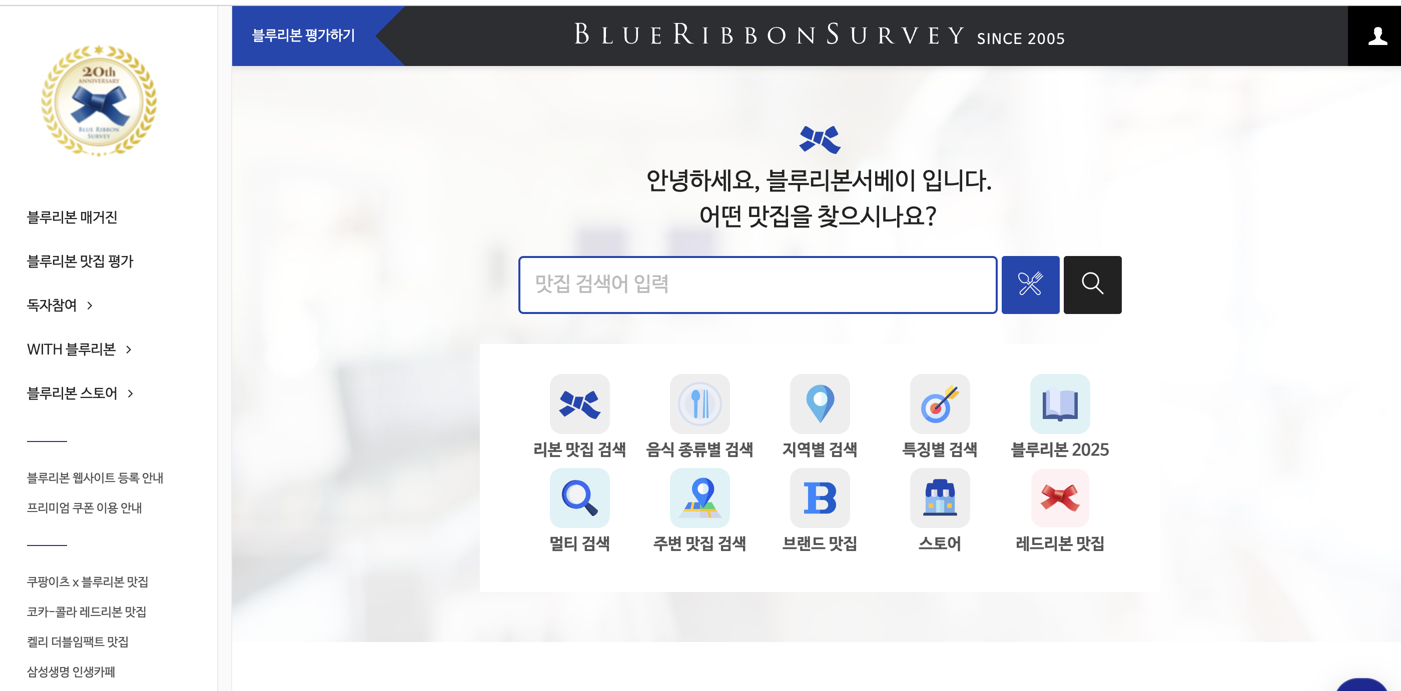 ✅ 네이버, 카카오맵 등에서 “블루리본 맛집” 검색