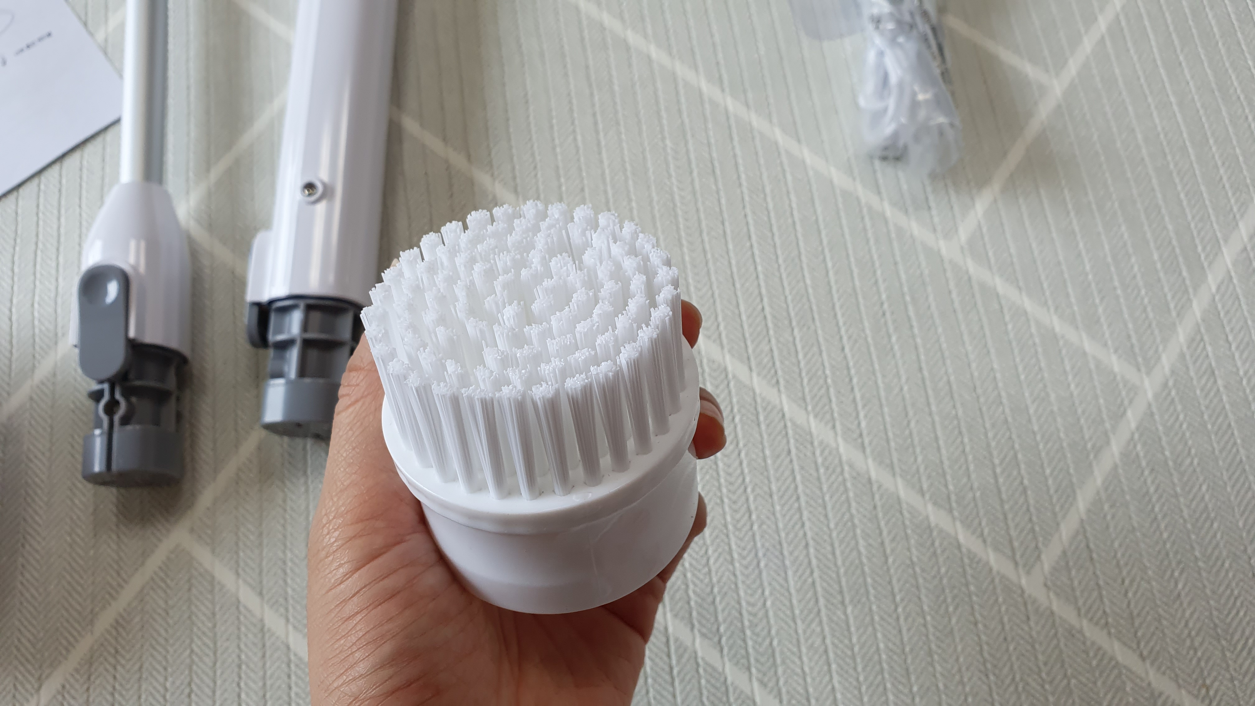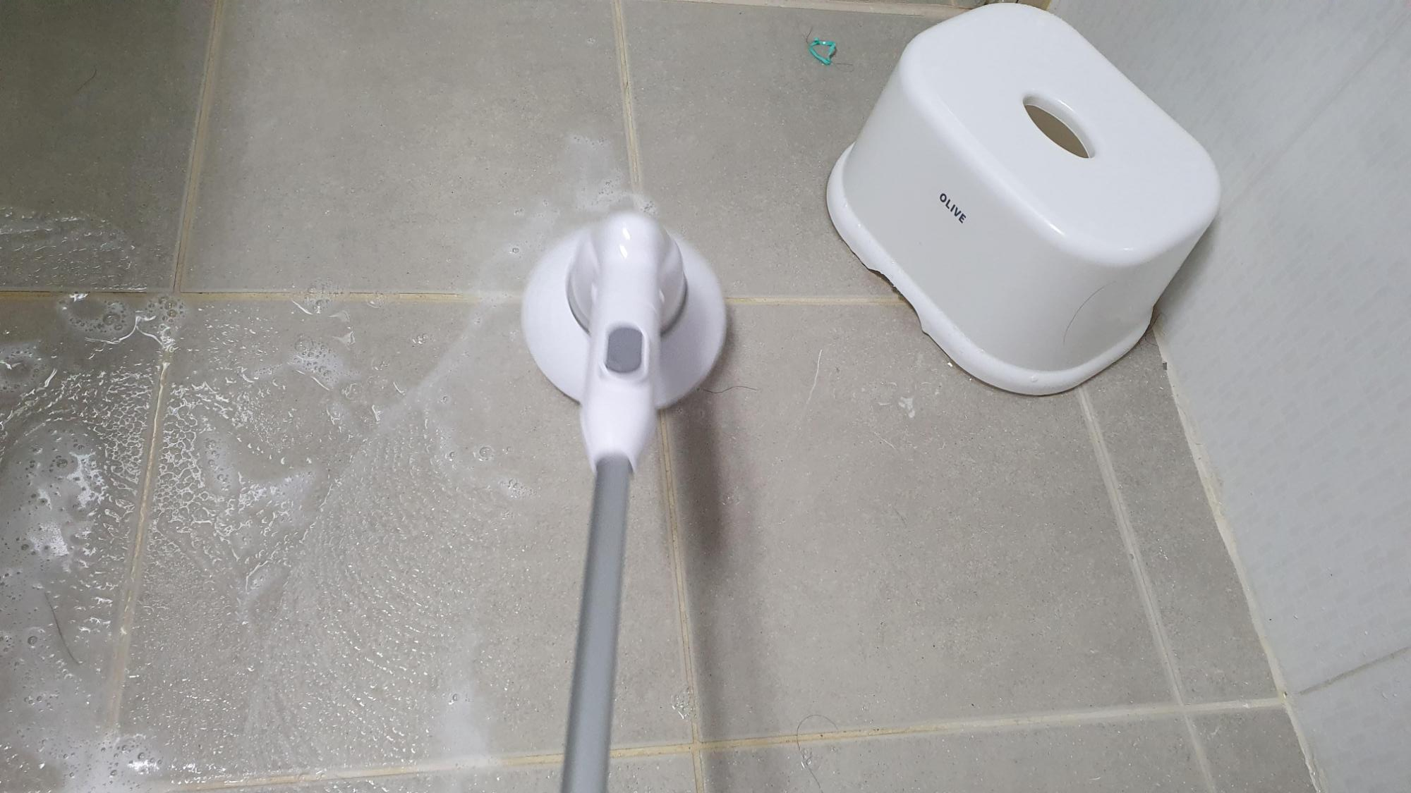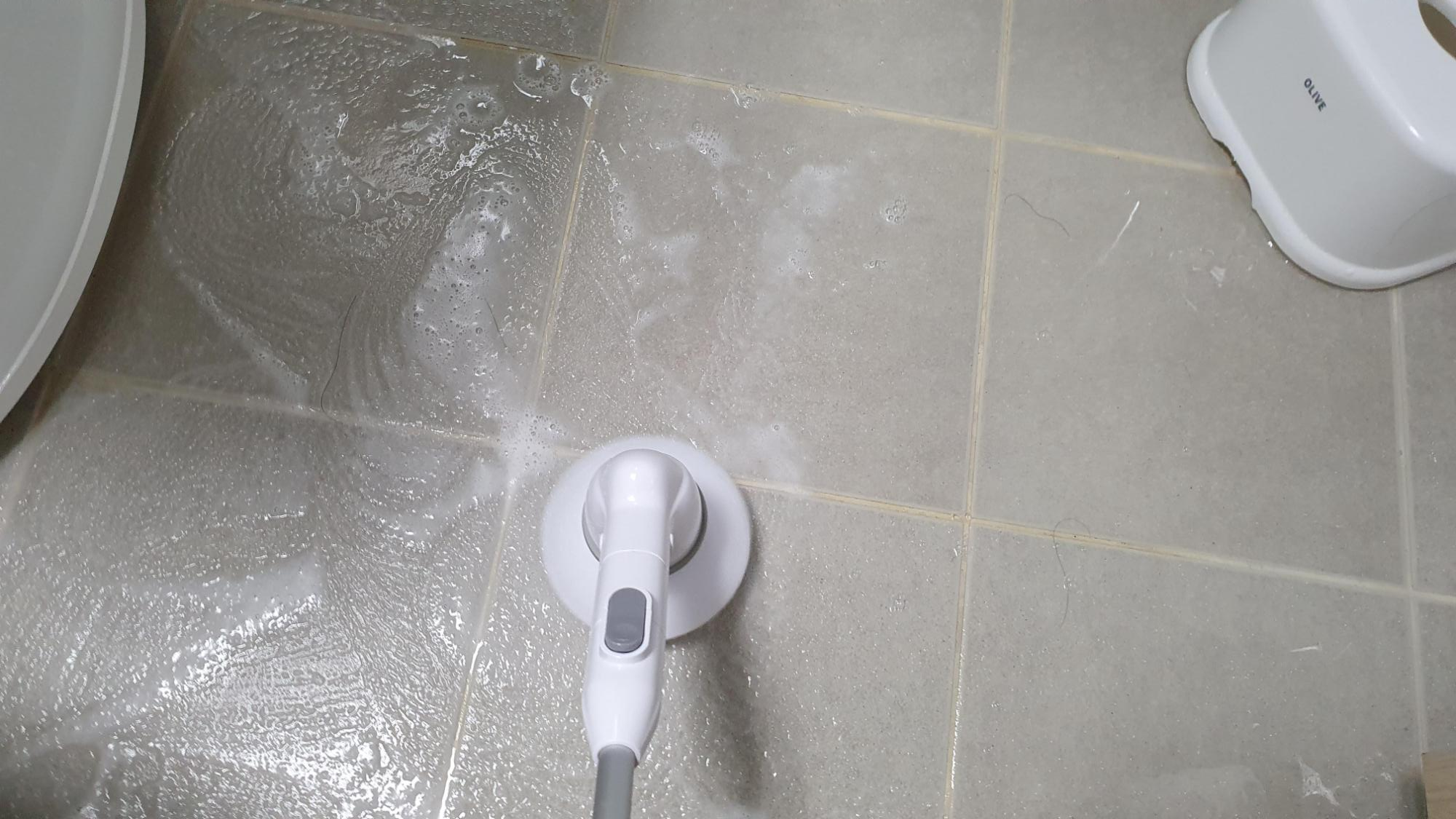 이게 한번 돌려보니까 생각보다 회전이 막 빠르지 않더라구요 ㅎ 그래서 그런지 정말 물튀김이 적고 안정적으로 돌아갔어요. 욕실을 한번씩 슥슥 밀어보는데 쾌감이 있더라구요 ㅎ 얼룩덜룩한 욕실 때가 벗겨지면서 하얗게 변하는데 진짜 편하면서 이래서 필요하지~ 싶더라구요 ㅎ 그동안 고생했던 날들이여 안녕~