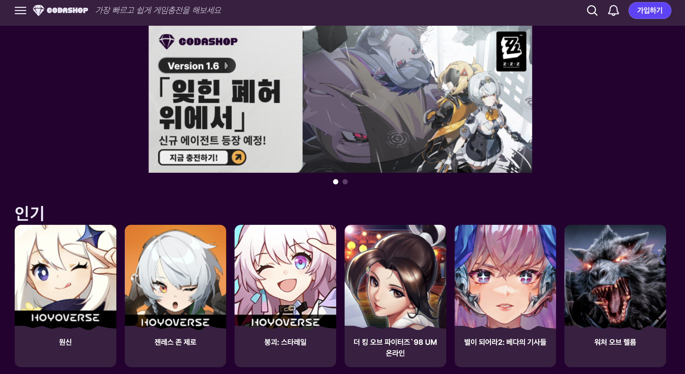 코다샵은 전 세계 게임 유저들이 이용하는 공식 디지털 결제 플랫폼으로, 다양한 게임과 앱의 인앱 결제를 쉽고 빠르게 도와줍니다.