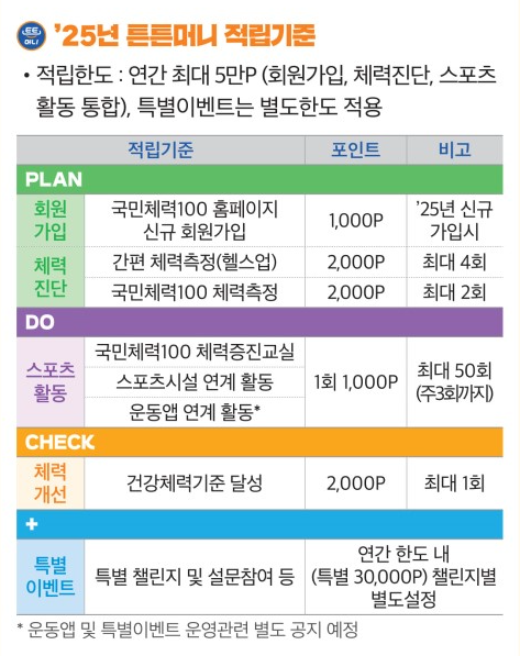 | 튼튼머니 | 만 19세 이상 국민 | 운동 참여 시 포인트 지급 (연 최대 7만 포인트) | 앱 설치 후 자동 연동 |