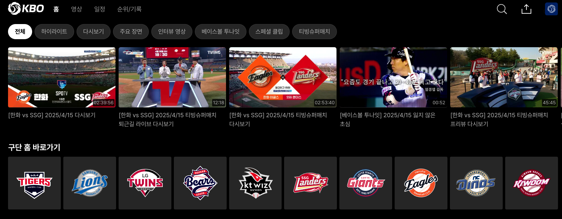 - 네이버스포츠에서 경기별 전체 VOD 제공