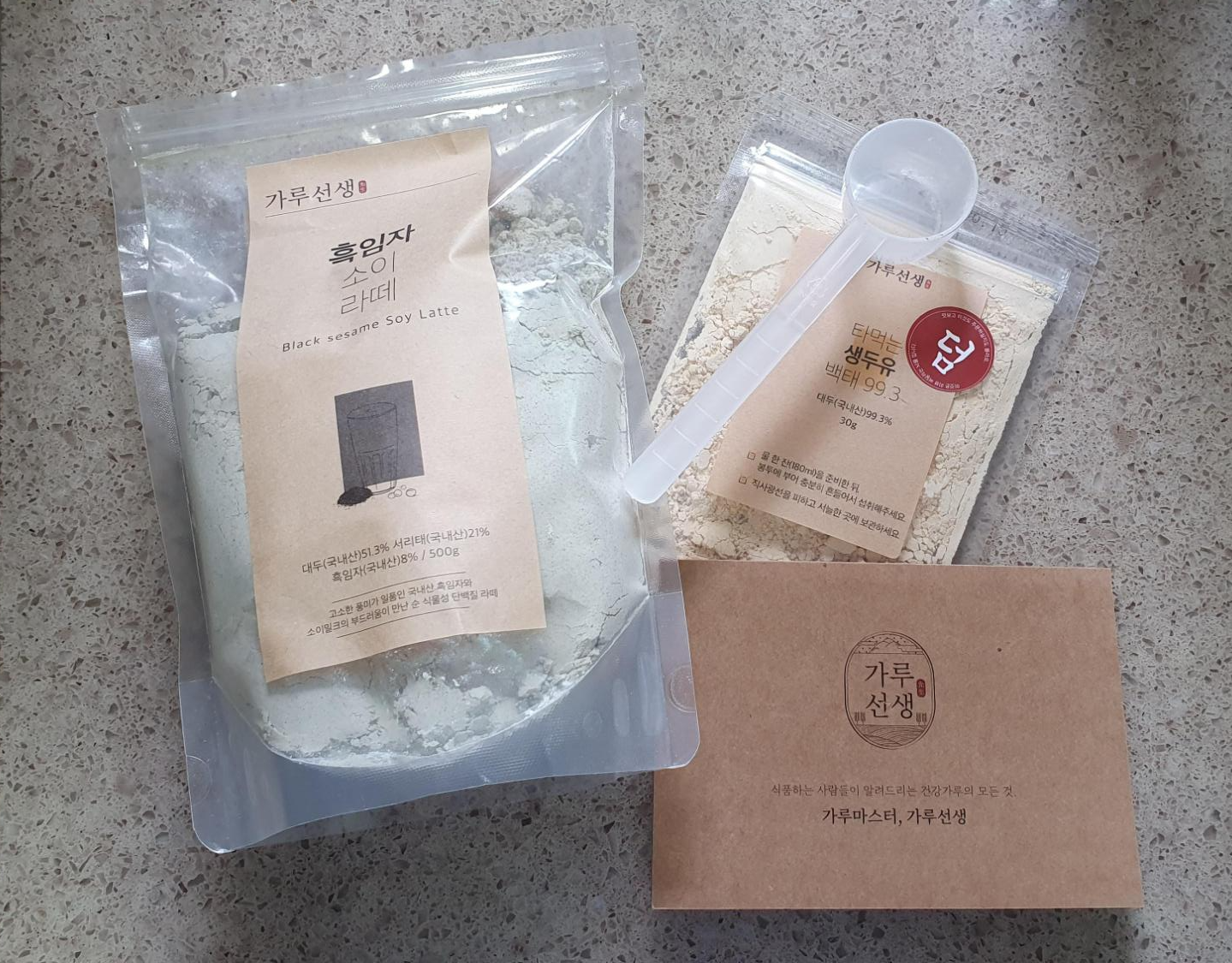 이것저것 많이 사려다가 일단 하나만 시켜서 먹어보고 사자 생각이 들어서 좋아하는 흑임자라떼 부터 시켜봤는데요, 요렇게 타먹는 생두유 가루를 덤으로 주셨어요 ㅎ 스티커에 리뷰서달라는 뇌물이라고 하시니 한번 저도 써보려구요 ㅋㅋㅋ 사실 엄마들 중에서 우유를 선호하시는 분들도 있고 두유를 선호하시는 분들도 있는데 또 어디서는 우유가 좋지 않다는 분들도 있어서요..그렇다고 두유를 먹이기엔 그럼 두유도 괜찮은 것인가 하는 의문이 들더라구요.