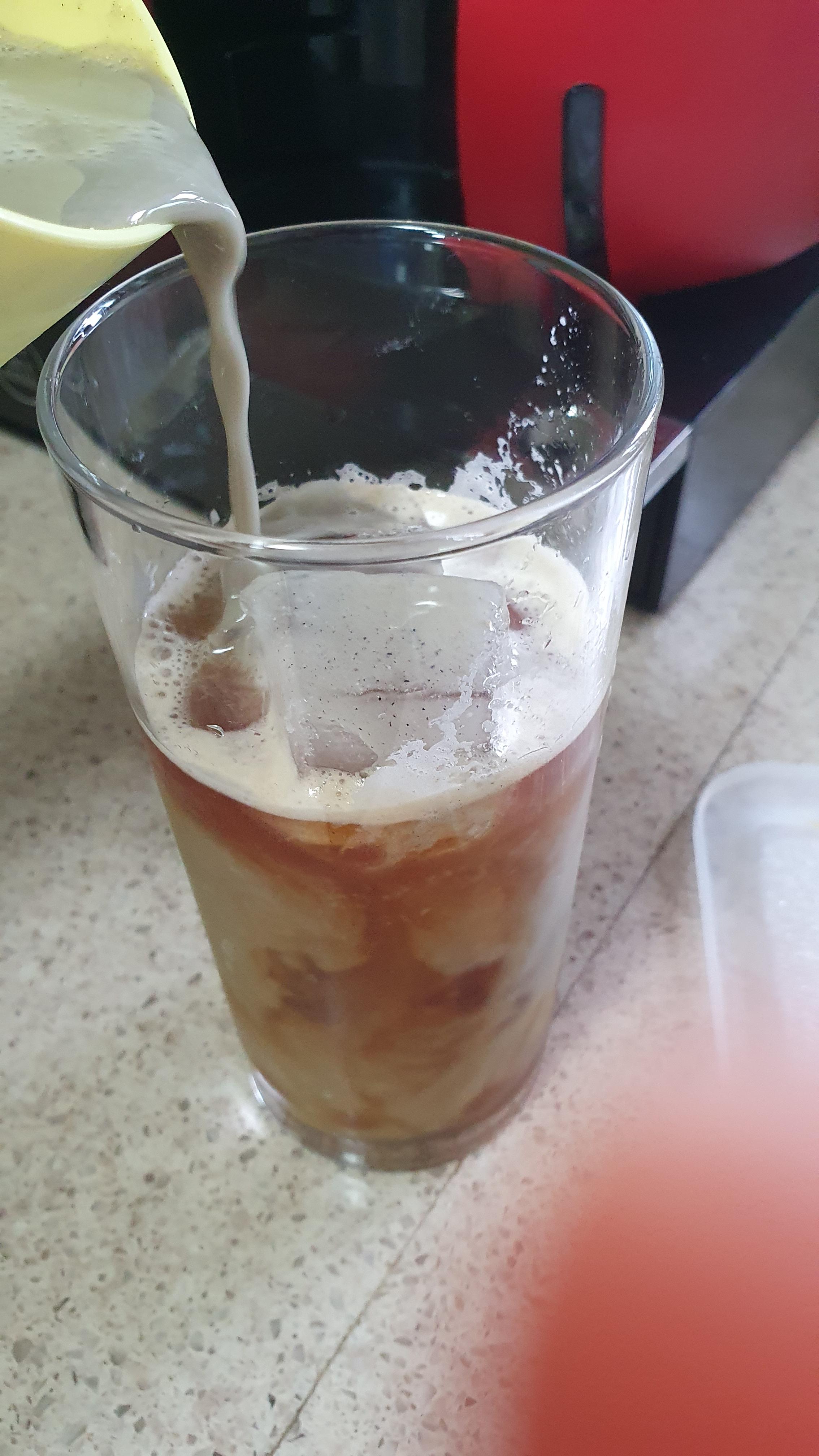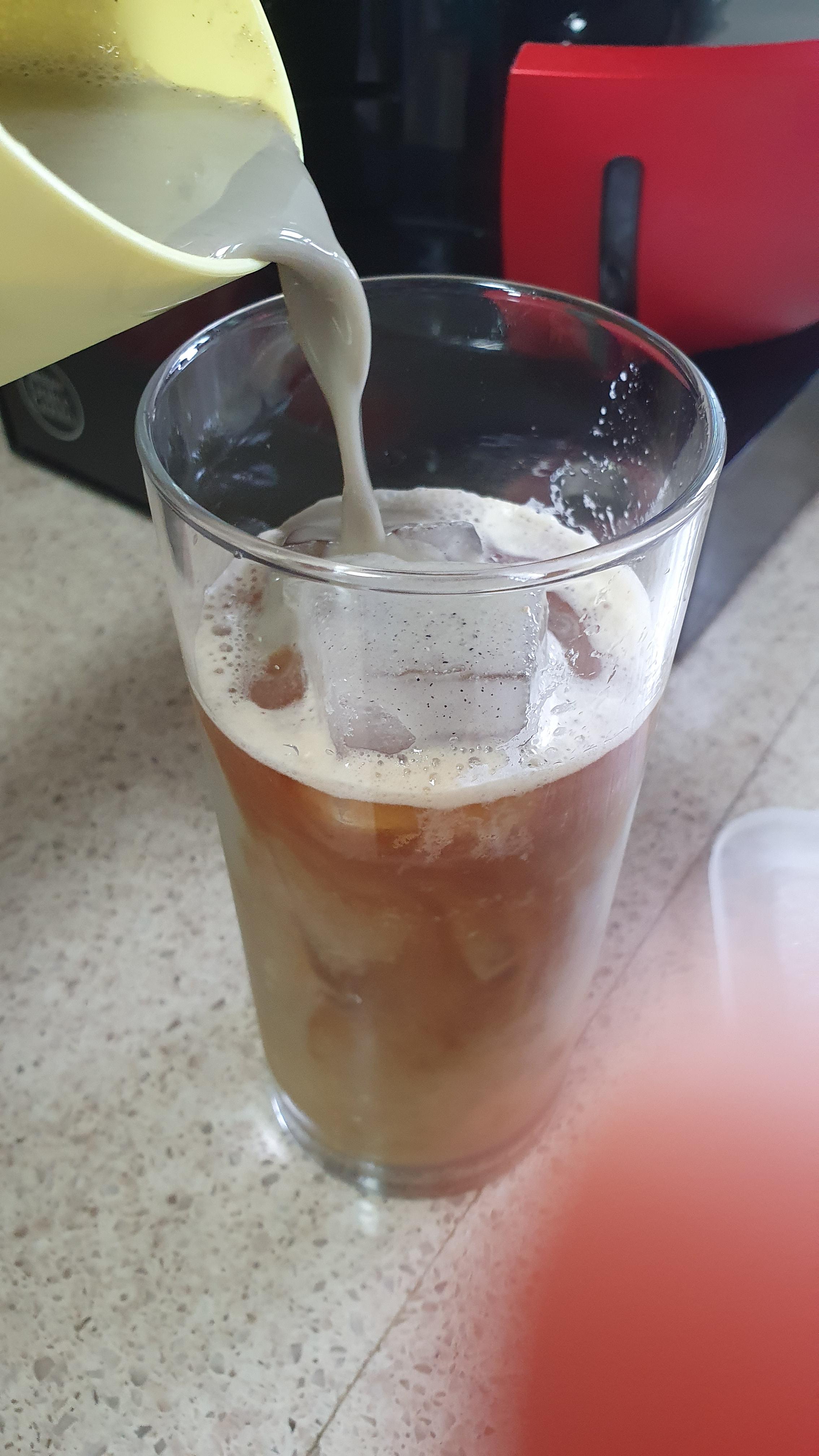커피를 내리고 얼음을 넣고 물이랑 흑임자라떼가루를 섞어서 커피에다 넣어주면 끝! 이에요 ㅎ