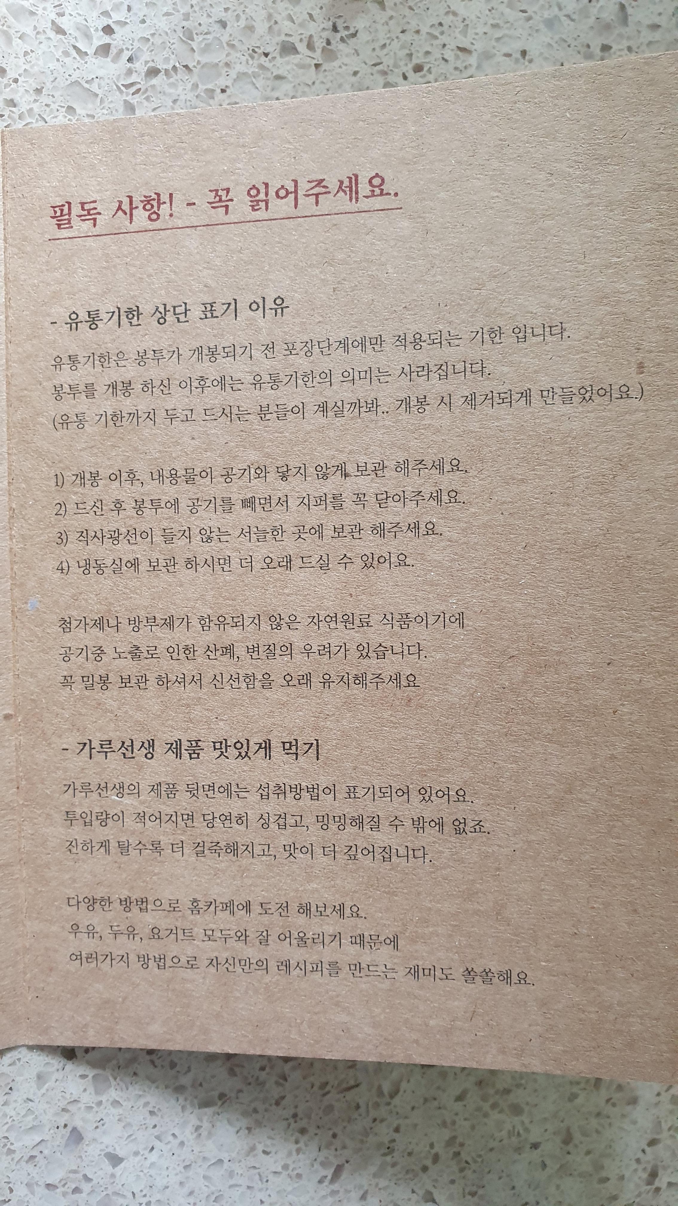 내용을 읽으면 읽을 수록 마음에 더 드는 것 같아요 ㅎ 정직하고 믿을 수 있는 재료만 사용한다고 하니 내가 먹는거 이왕이면 이런거 먹는게 좋겠죠? 카페에서 뭐 넣는지 모르고 그냥 먹는 것 보다는 이게 좋겠다 생각이 들더라구요 ㅎ